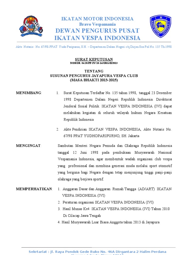 Surat edaran ini merupakan jenis surat resmi yang di tujukan pada organisasi maupun kalangan tertentu. Biasanya surat keputusan akan dibuat jika seorang merupakan pimpinan atau atasan untuk memutuskan sesuatu yang harus diketahui oleh setiap anggota dalamorganisasi, di dalam. 06/kongres iii/iii/2008 tentang tata tertib pemilihan ketua umum dpp permahi Jika anda pernah mengenyam pendidikan hingga ke perguruan tinggi, akan sudah tidak asing lagi dengan berbagai. Kumpulan contoh surat keputusan untuk berbagai keperluan, seperti surat keputusan organisasi, keputusan pengangkatan, kepala sekolah dll dalam artikel ini, saya akan memberikan beberapa contoh surat keputusan berikut cara membuatnya secara lengkap untuk anda.